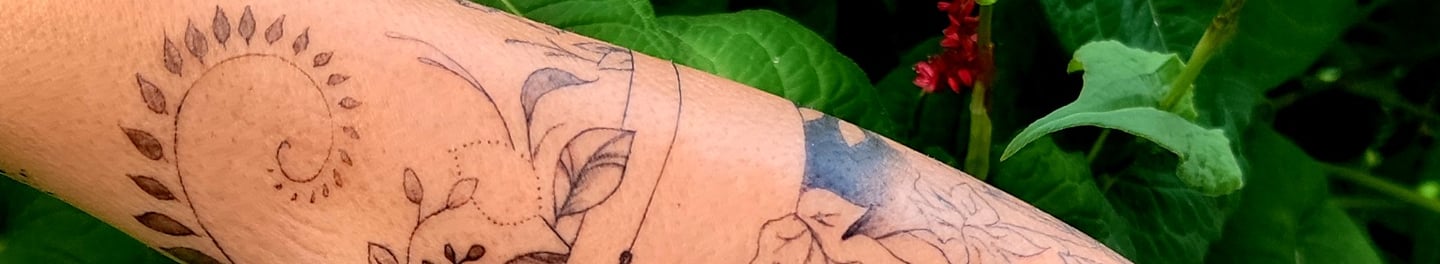 Hast du bereits Tattoos? Falls ja, schicke mir bitte Fotos, wenn du dein neues Tattoo passend zu den bereits bestehenden gestaltet haben möchtest oder zwecks Planbarkeit der Größe, wenn eine Lücke gefüllt werden soll...